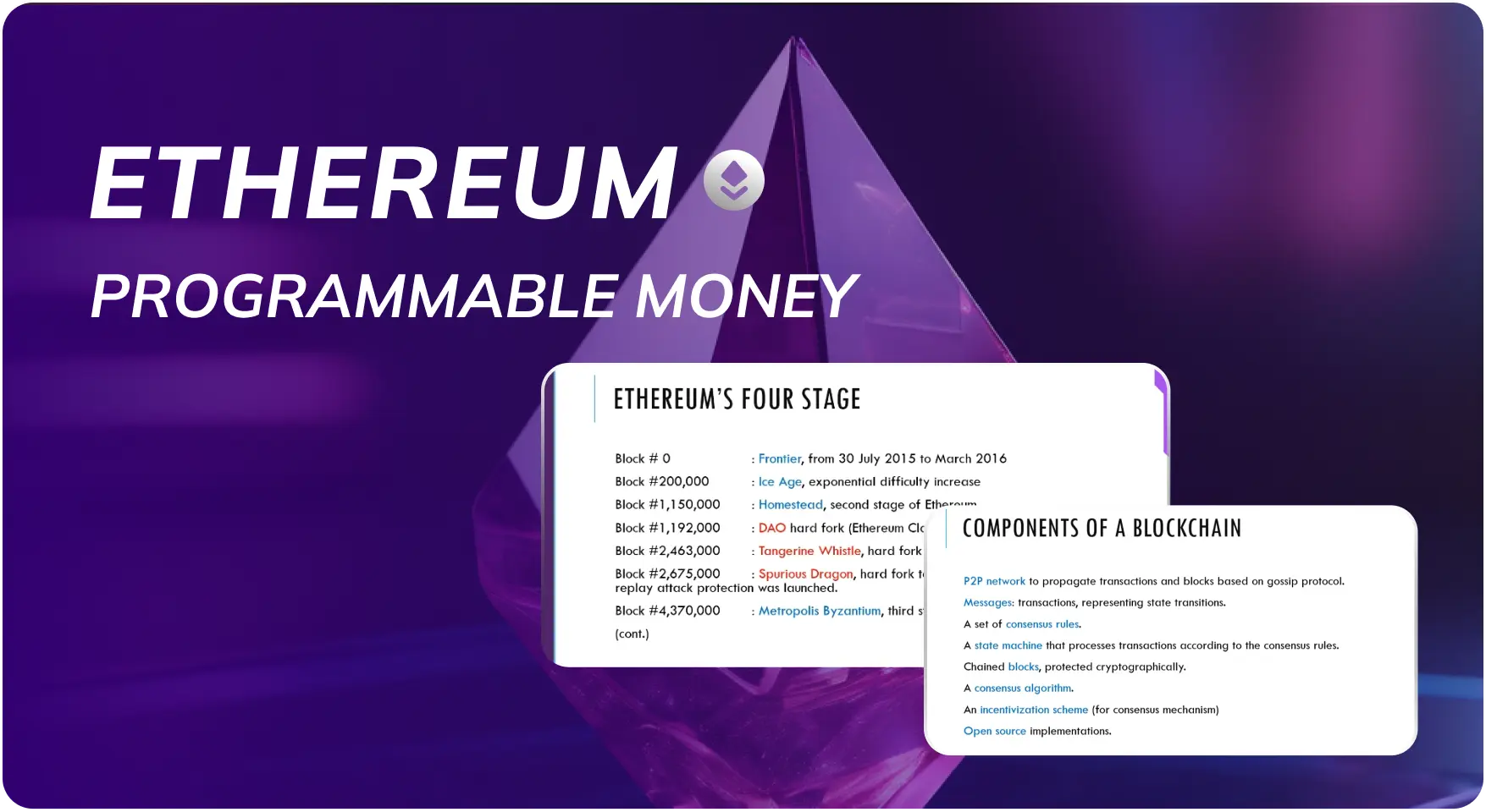 Di modul ini kalian akan belajar semua yang perlu kalian tau tentang ethereum atau biasa disebut “the world computer”. Mulai dari pengenalan ethereum, perbedaan Bitcoin dan Ethereum, dari awal sejarahnya, komponen dari ethereum, basic dari denominasi ethereum, wallet, dan networks, struktur transaksinya, transaction nonce, gas, & gas limit,