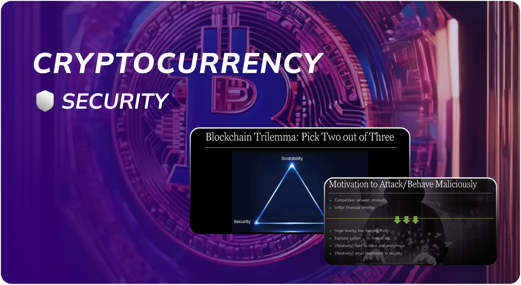 pemanfaatan blockchain, cara menyimpan crypto dengan aman, teknik kriptografi, blockchain interoperability, dan blockchain development sampai bisa programming untuk bikin smart contract/crypto kalian sendiri.